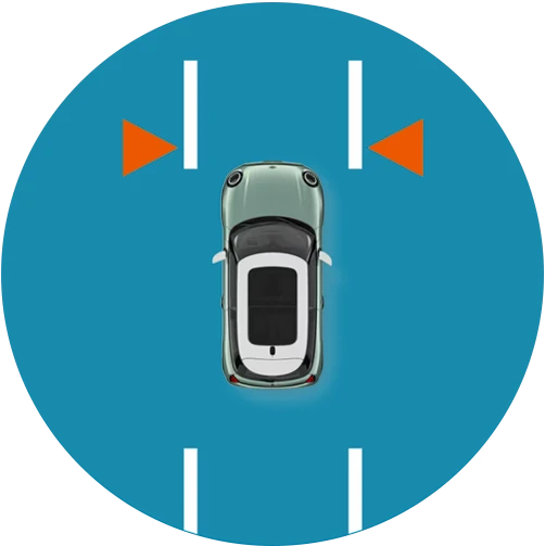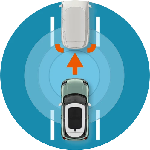 Multiple driving assistance functions work as a unit. Your MINI maintains speed, lane, and distance to the vehicle in front of you. It autonomously brakes and accelerates. Cameras monitor the traffic situation and recognize signs. This way, you receive important information directly in the cockpit, and your MINI reacts more proactively. On highways, country roads, and in city traffic, you are relieved for safer maneuvers in unclear situations. You are informed in a timely manner about speed limits and overtaking bans.