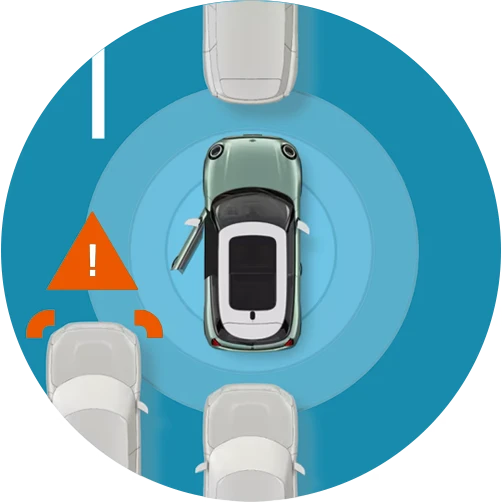 Exit Warning uses visual and acoustic alerts to notify the driver when other vehicles or cyclists are approaching from behind as the vehicle doors are opened.
